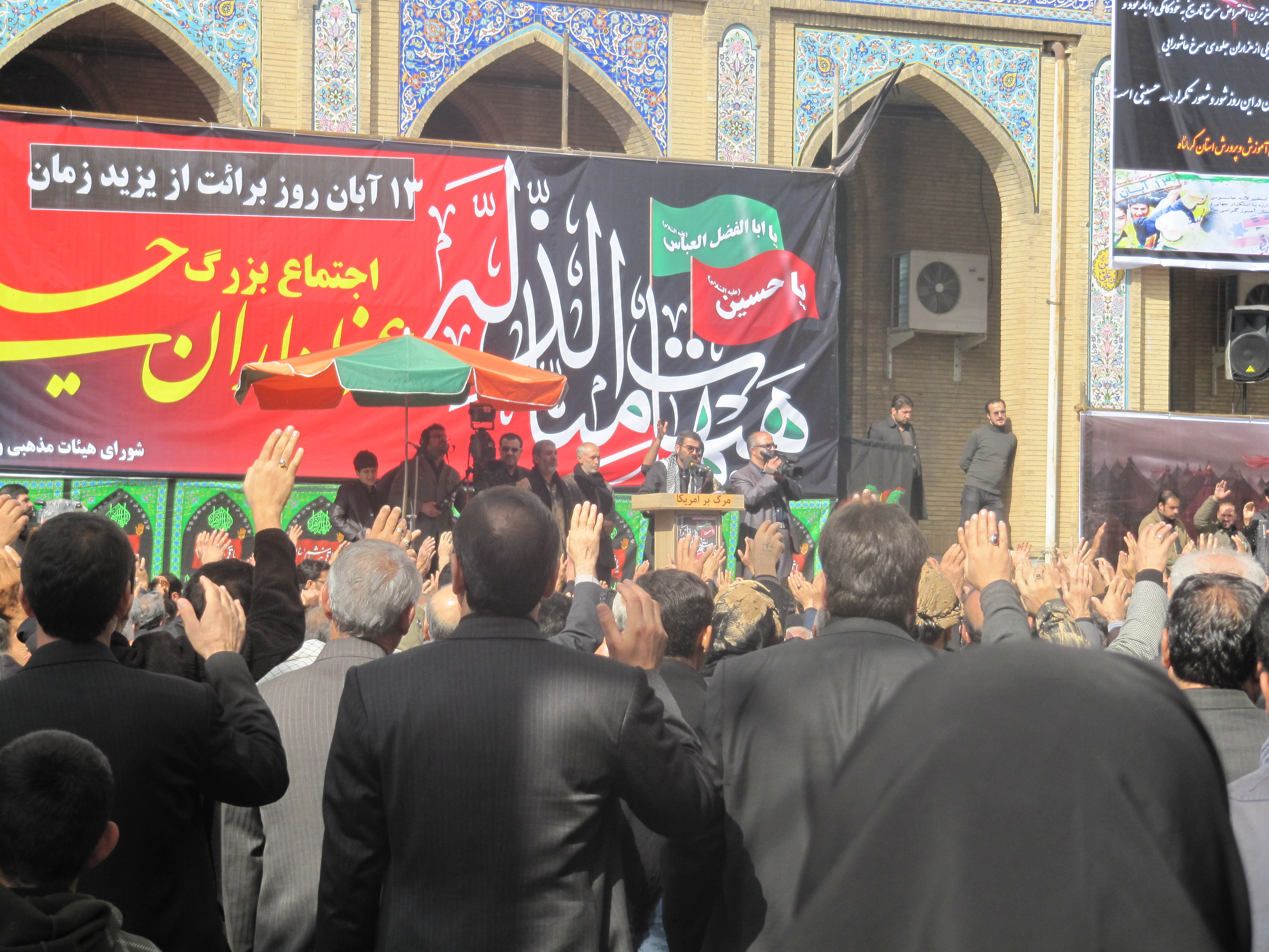 همچنین با توجه به تقارن این روز با یوم الله 13 آبان روز استکبارستیزی شرکت کنندگان از یزیدیان و یزید زمانه آمریکای جنایتکار و صهیونیسم غاصب اعلام برائت و انزجار نموده واین مراسم با صدور قطعنامه ای بااعلام حمایت و پشتیبانی از نظام مقدس جمهوری اسلامی ایران و ولایت فقیه به پایان رسید.